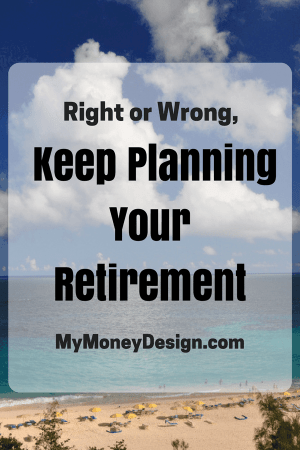 One of the most frustrating parts of retirement planning is the fact that no matter how ironclad yours might be, there will always be someone who will tell you that its wrong. And unfortunately they’re right. They’re right in the sense that no one can predict what is going to happen in the future. Assumptions are the gears that make our retirement machines work. Choose unwisely and your plan will deviate from reality very quickly. Nearly every assumption we use in retirement planning is up for debate. The average annualized market return we use to forecast how much our portfolios will grow is really nothing more than just an “average”. You see this all the time that someone will make an Excel spreadsheet where their nest egg … [Read more...] about Right or Wrong, Keep Planning Your Retirement