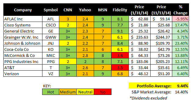 Will one of these financial media sites be able to predict the right stock performance for all 10? Will any of them be able to pick a stock portfolio that beats the portfolio I put together or even the S&P 500 index? Let’s read on to see how we’re doing at our nine-month check-in.